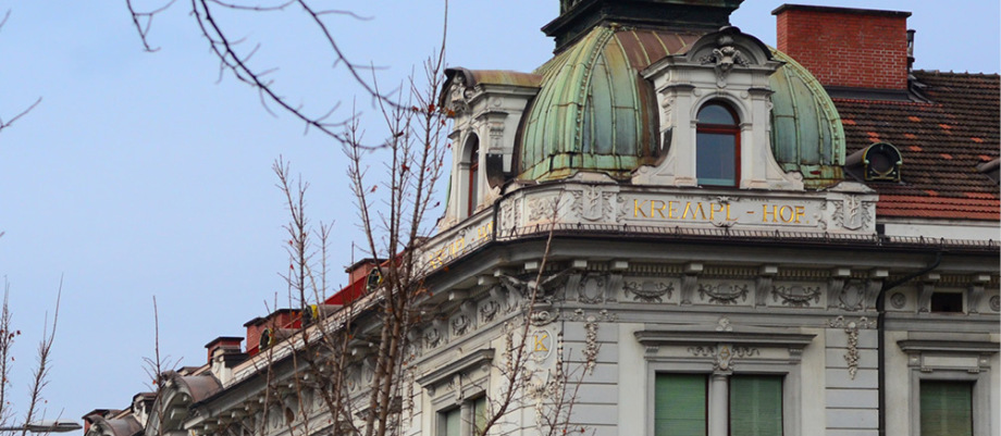 Der Kremplhof, der sich in zentraler, doch ruhiger Leobener Lage an der Ecke Erzherzog Johann- und Peter Tunner-Straße dreigeschossig erhebt, ist immer schon ein Haus mit Anspruch gewesen. Viele illustre Namen haben unter dieser Adresse gewohnt und gearbeitet. Seine Atmosphäre ist ganz einfach besonders. Und auch architektonisch ist er ein Juwel. Charakteristisch für die Architektur der späten Gründerzeit ist seine Fassade reich gegliedert, Schmuck und Stuck dekorieren die Portale und die Eingangsgewölbe. Die bekrönende, kupfergedeckte Kuppel ist weithin sichtbar.